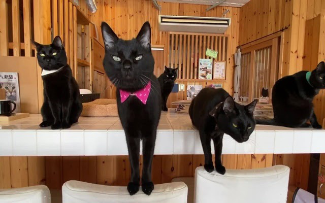 Trong quán cà phê mèo đen Nekobiyaka luôn có ít nhất khoảng 10 con mèo đen, mỗi con sẽ được đeo một chiếc vòng màu có sắc khác nhau quanh cổ để du khách đi tour Nhật Bản có thể dễ dàng phân biệt và nhận dạng chúng. Thậm chí, chủ quán đã thiết kế nguyên một menu mèo liệt kê tất cả số mèo có trong quán và màu vòng cổ tương ứng để phân biệt chúng. Khi đến đây tham quan, nhân viên của quán sẽ cho bạn mượn một cuốn sách nhỏ có ảnh của tất cả các con mèo ở đây, liệt kê tên và sinh nhật của chúng.